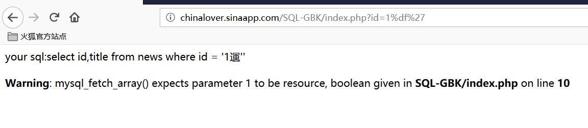 这时就要宽字节注入了,输入id=1%df%27,这时sql语句为