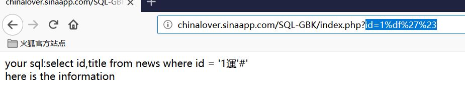 输入id=1%df%27%23,发现页面回显正常,这时就可以正常注入了。