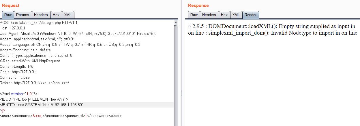 用burpsuite抓包发现,数据是利用XML进行传输的