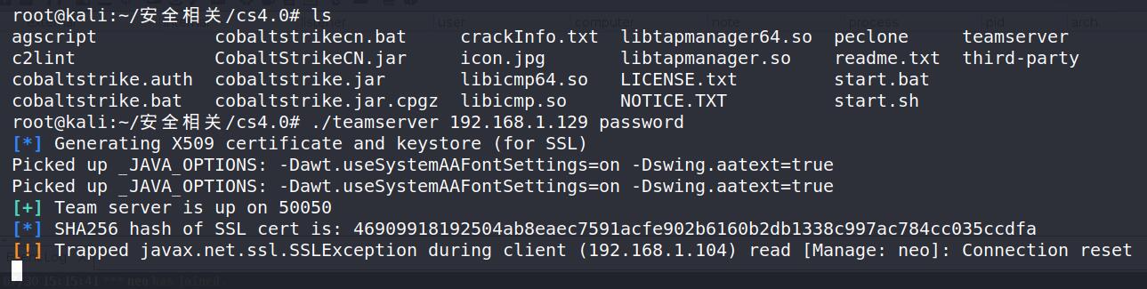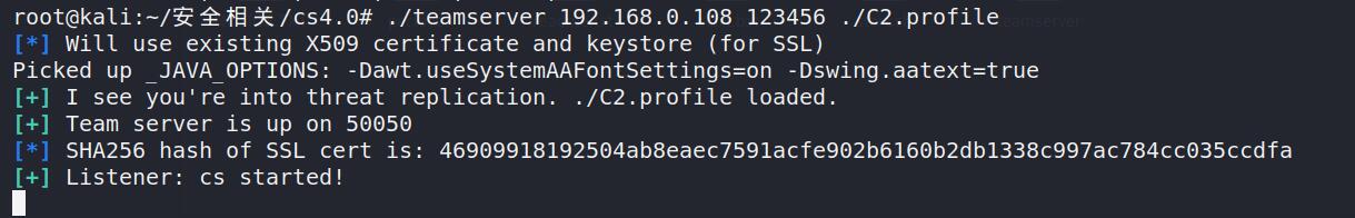 4)重新启动cs:./teamserver 192.168.0.108 123456 ./C2.profile