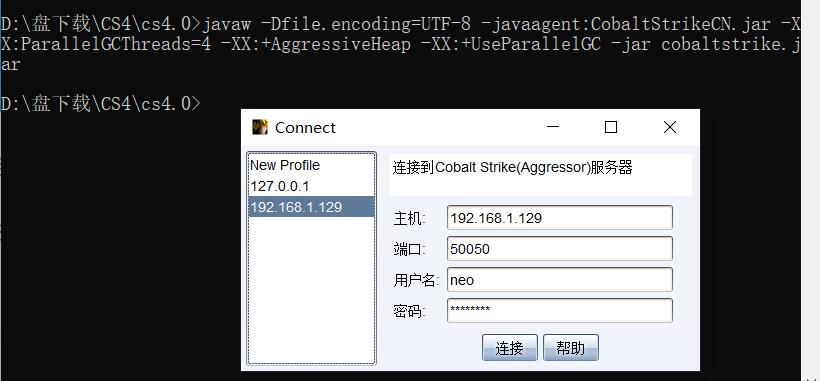 javaw -Dfile.encoding=UTF-8 -javaagent:CobaltStrikeCN.jar -XX:ParallelGCThreads=4 -XX:+AggressiveHeap -XX:+UseParallelGC -jar cobaltstrike.jar