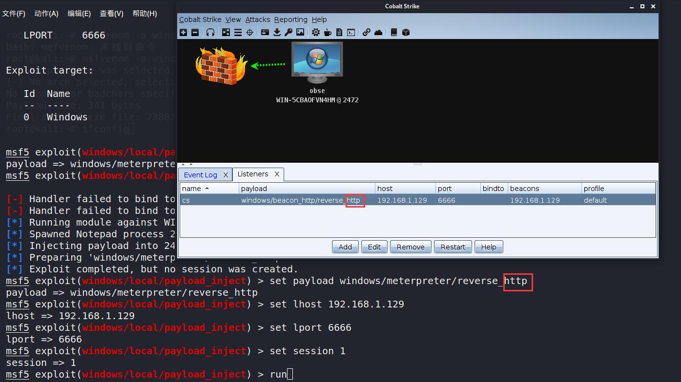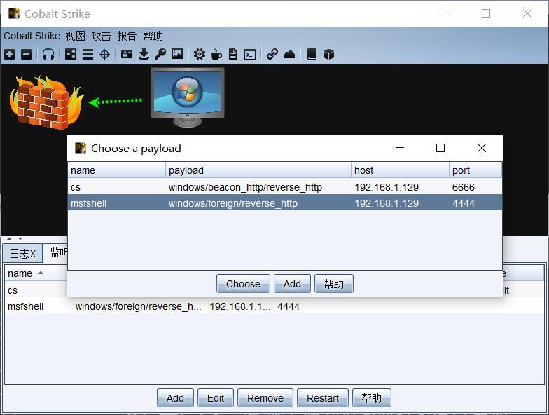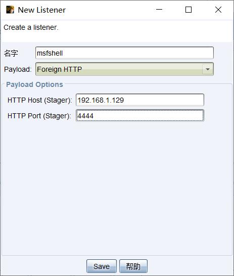 3)设置payload等配置,设置payload时,最后的协议要与cs中的一样,端口也要一样